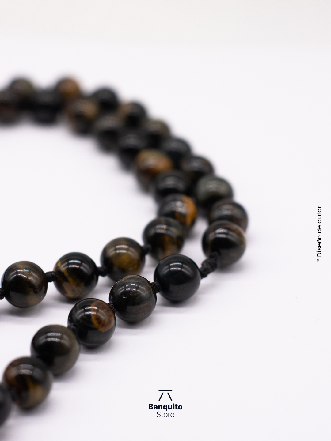 Este collar está elaborado con piedras naturales de ojo de tigre negro, cuidadosamente seleccionadas por su tonalidad profunda y sus sutiles vetas naturales, que aportan fuerza visual y un estilo atemporal.