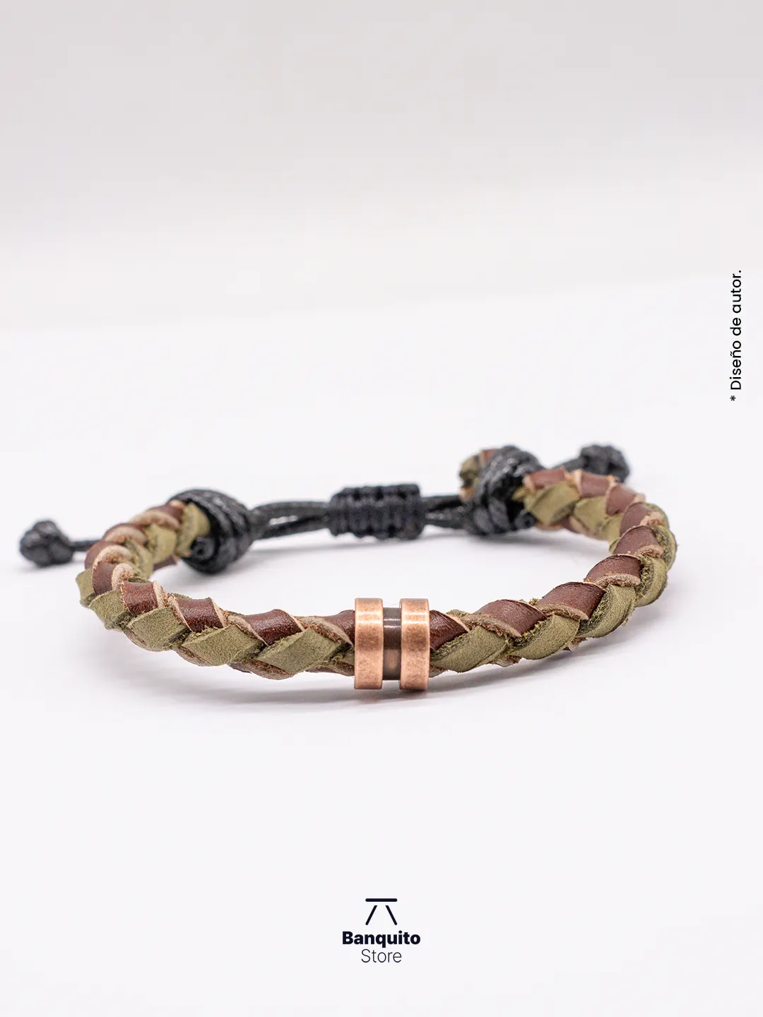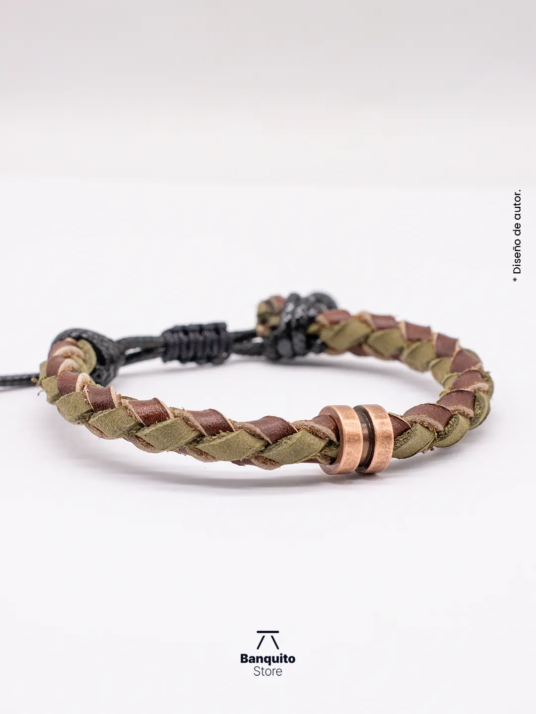 Esta pulsera de cuero natural bi tono combina dos tonalidades cuidadosamente seleccionadas: café profundo y verde sobrio, logrando un equilibrio perfecto entre masculinidad, diseño y autenticidad.